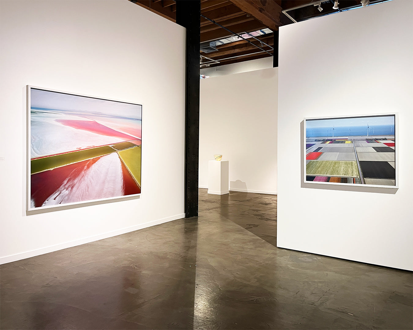 Photographs are printed using archival materials, mounted to an archival aluminum substrate, and framed in white behind acrylic; frames measure 0.75 inches wide and 2 inches deep.
