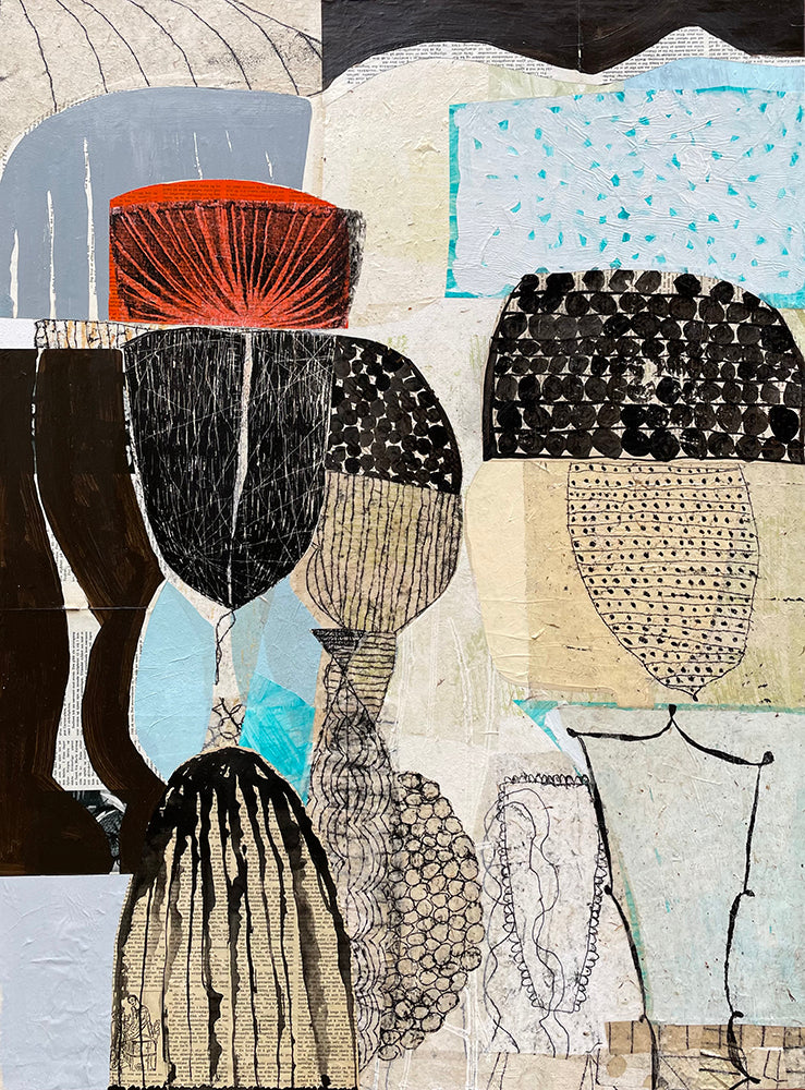 Pages from vintage magazines I have inherited from my grandfather’s bookstore in Northern Norway are used as collage material, together with Nepalese papers, paints and inks.