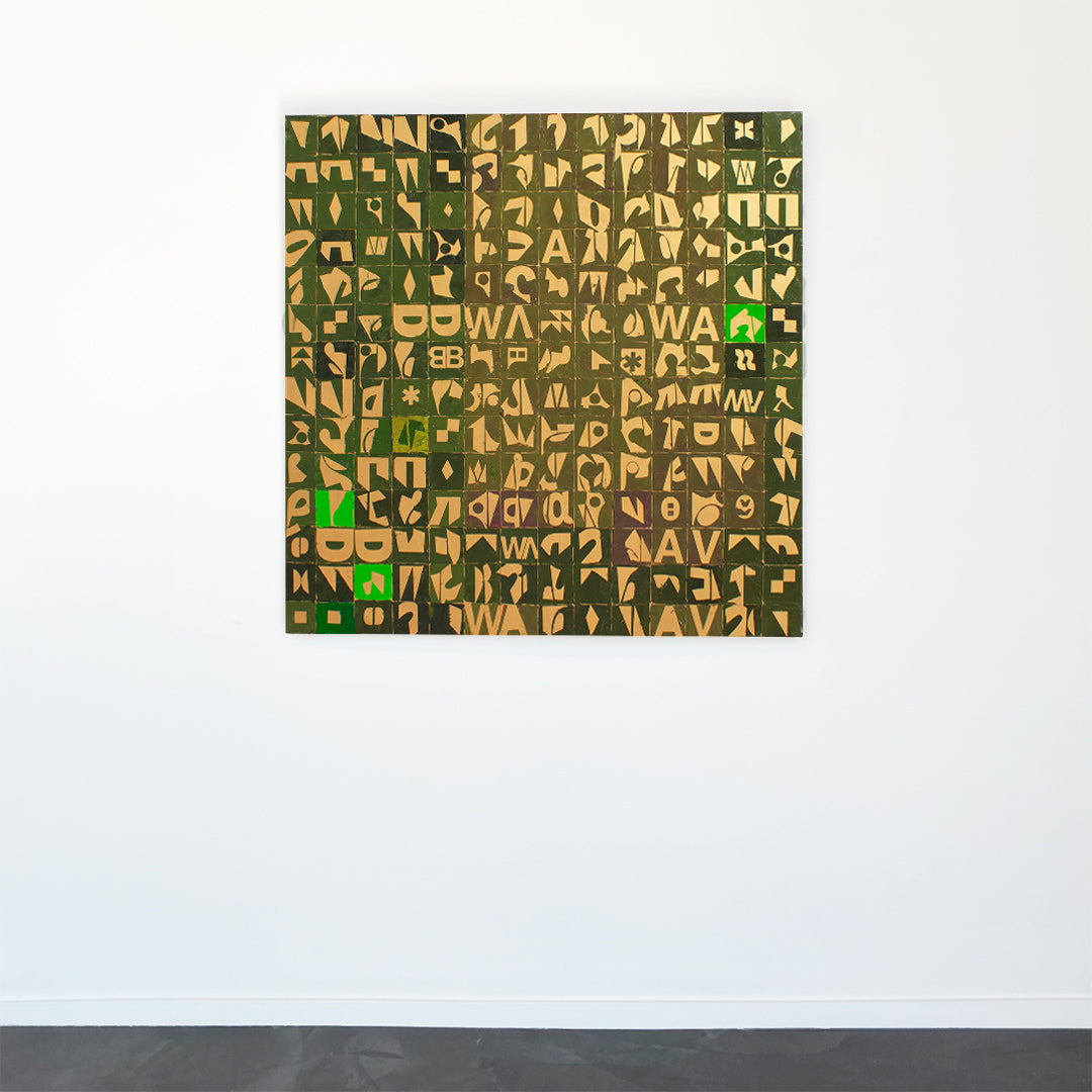 Bratsa Bonifacho’s paintings draw from the artist’s interest in language, classical music, and dynamic color, and more recently, from his interest in technology and cultural identity. Building off of his previously established visual language, Bonifacho's No Sugar Added series employs a simplified grid structures and code-like symbology that seem to embed messages on their colorful surfaces.