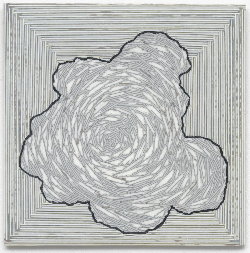 Reform explores shifting landscapes from mining extraction processes. It is inspired by open pit mines carving into the landscape. The color in the mosaic is created by a chemical reaction at high temperature in the kiln between two white glass bodies, referencing the use of extracted minerals in our daily lives. - Katie Miller