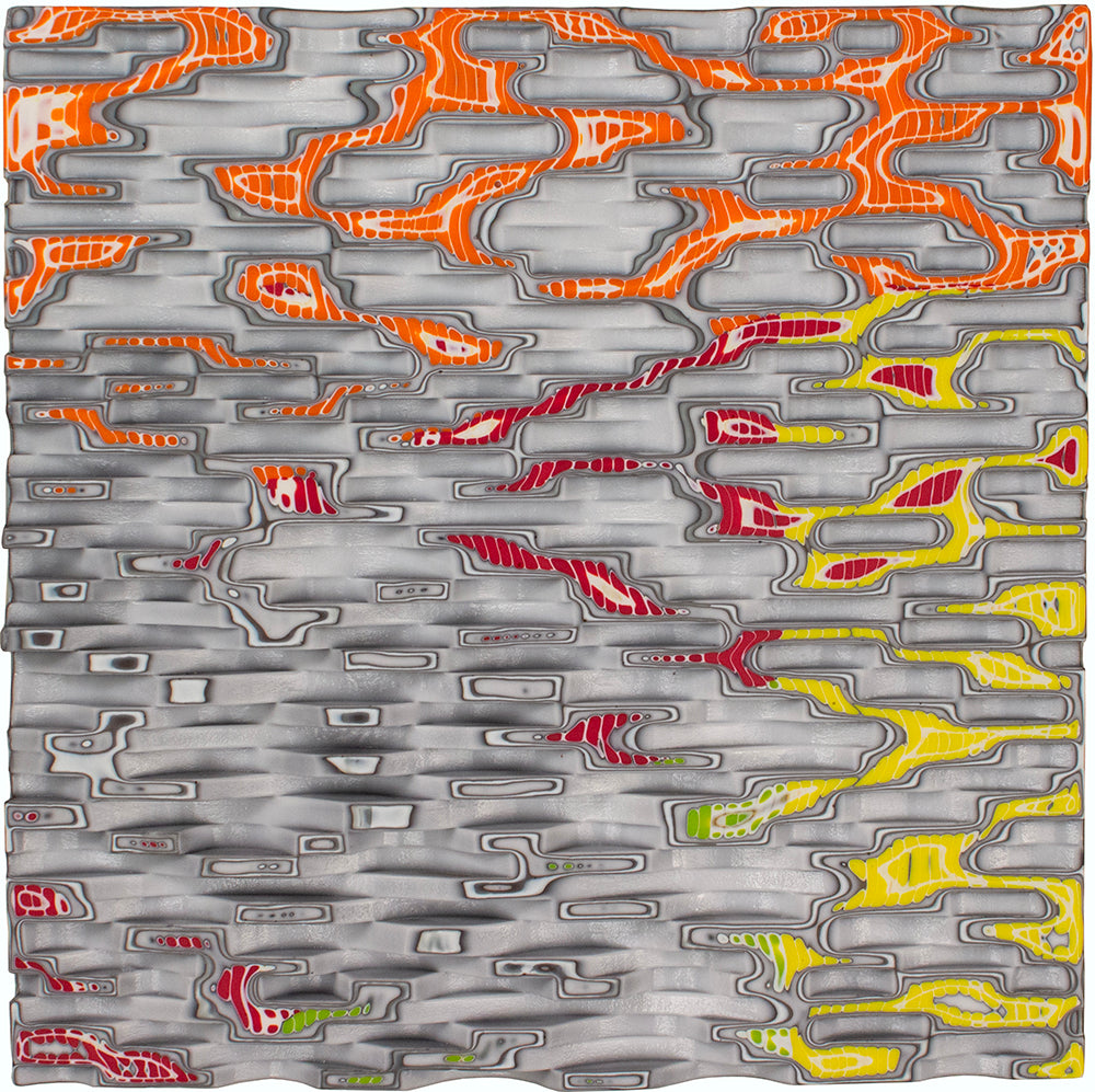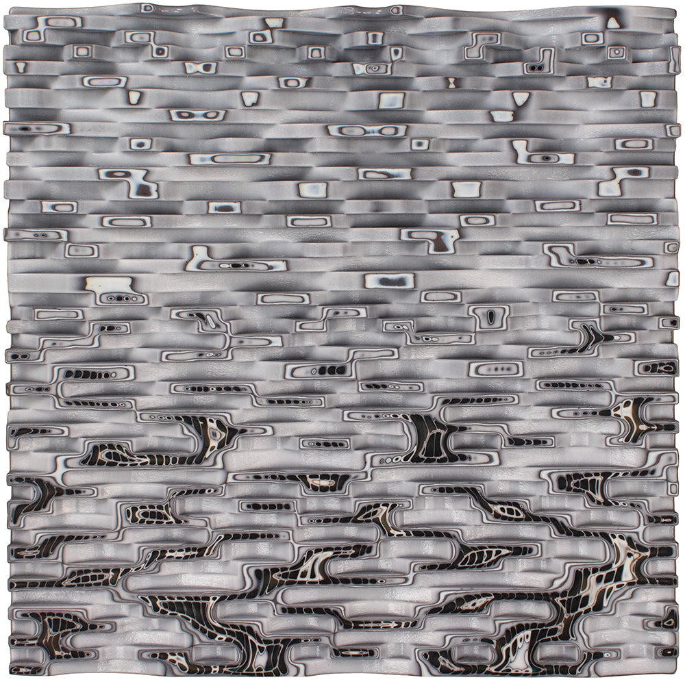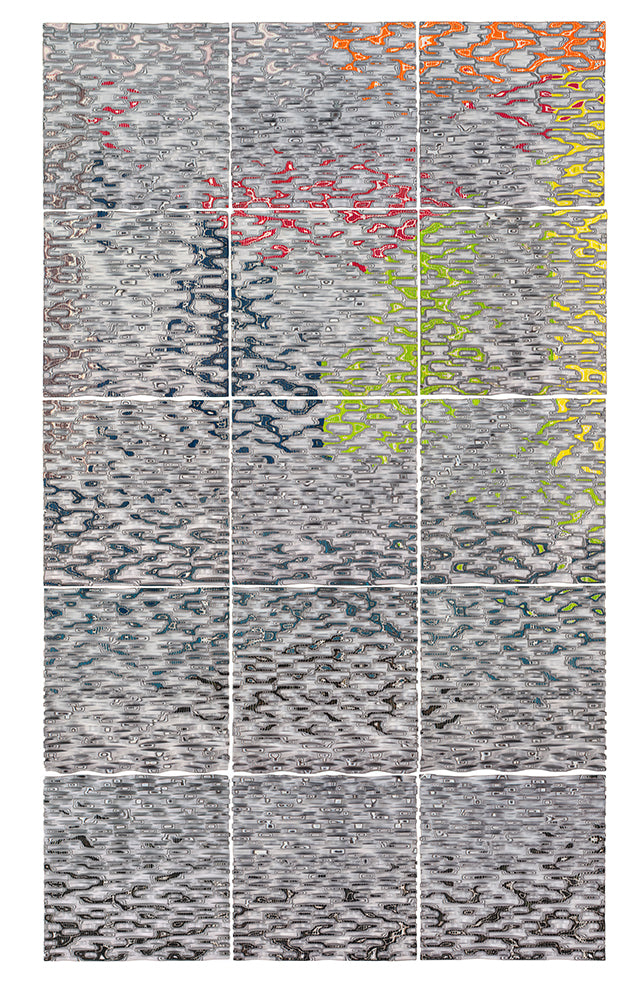 Ripple is comprised of 15 unique panels measuring 14 x 14 x 1.5 inches each.