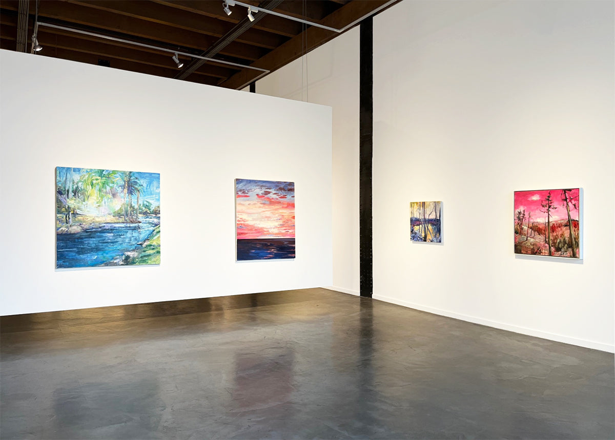 Using both real and imagined places for her inspiration, Julie Himel creates pathways and landscapes that invite the viewer to step into her dreamlike environments. She creates richly textured surfaces by using bold, active brushstrokes and unorthodox, yet highly saturated colors. Using paint as the medium to formalize the possibility of a place, Himel’s Awe Struck series reflects a call for symbiosis with the natural world around us.