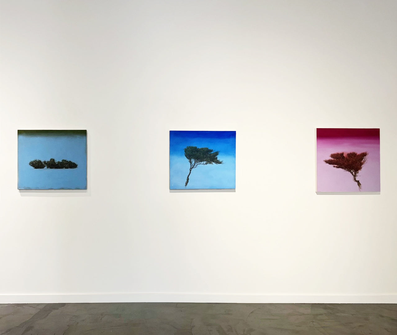 Robert Marchessault’s love of trees is evident in his serene compositions. Although done with intricate detail and luminous color, Marchessault’s trees are not species specific, but rather are the artists’ creations. He takes his vast knowledge of trees, gained through hands-on experience of extensive planting and tending, and considers trees’ significance as indicators of the health of our environments and global climate. Each tree floats on an abstract atmospheric background, allowing for something akin to landscape painting but in a style all his own.