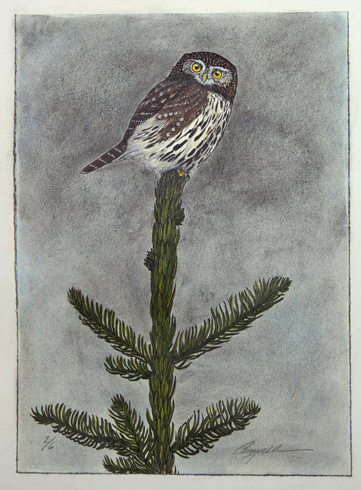 Over the years I produce a number of black and white lithographs that were drawn directly on a stone or on a plate and Kent Lovelace of Stone Press printed them. Some were contributed for fund raising including The Nature Conservancy and the organizations like People for Puget Sound and the Nisqually Delta Association that existed at that time. They depicted avian subjects that are often dramatically present and important within the ecosystems of the Pacific Northwest.