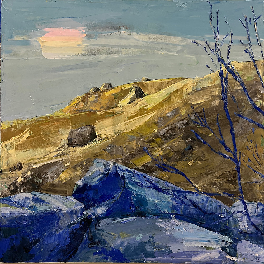Using both real and imagined places for her inspiration, Julie Himel creates pathways and landscapes that invite the viewer to step into her dreamlike environments. She creates richly textured surfaces by using bold, active brushstrokes and unorthodox, yet highly saturated colors. Using paint as the medium to formalize the possibility of a place, Himel’s Awe Struck series reflects a call for symbiosis with the natural world around us.